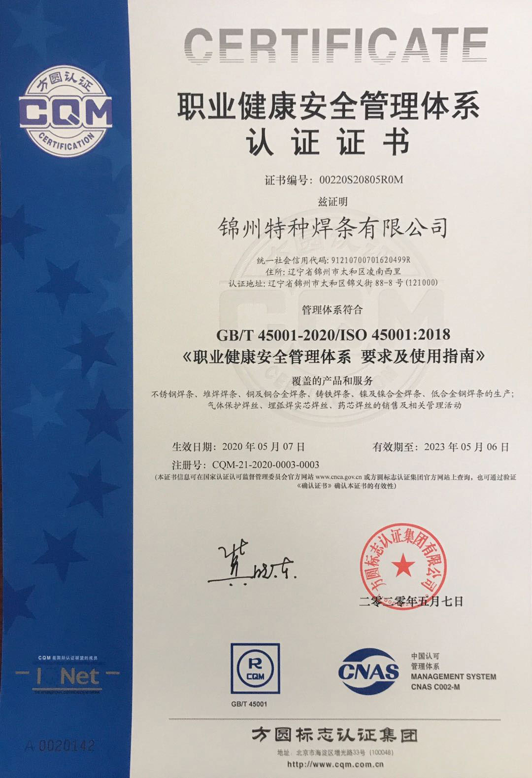 Certification Category:GB/T 45001-2020/ISO 45001:2018 《職業(yè)健康安全管理體系 要求及使用指南》
