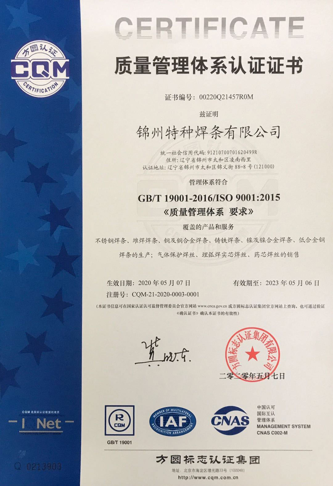 Certification Category:GB/T 19001-2016/ISO 9001:2015《質量管理體系 要求》